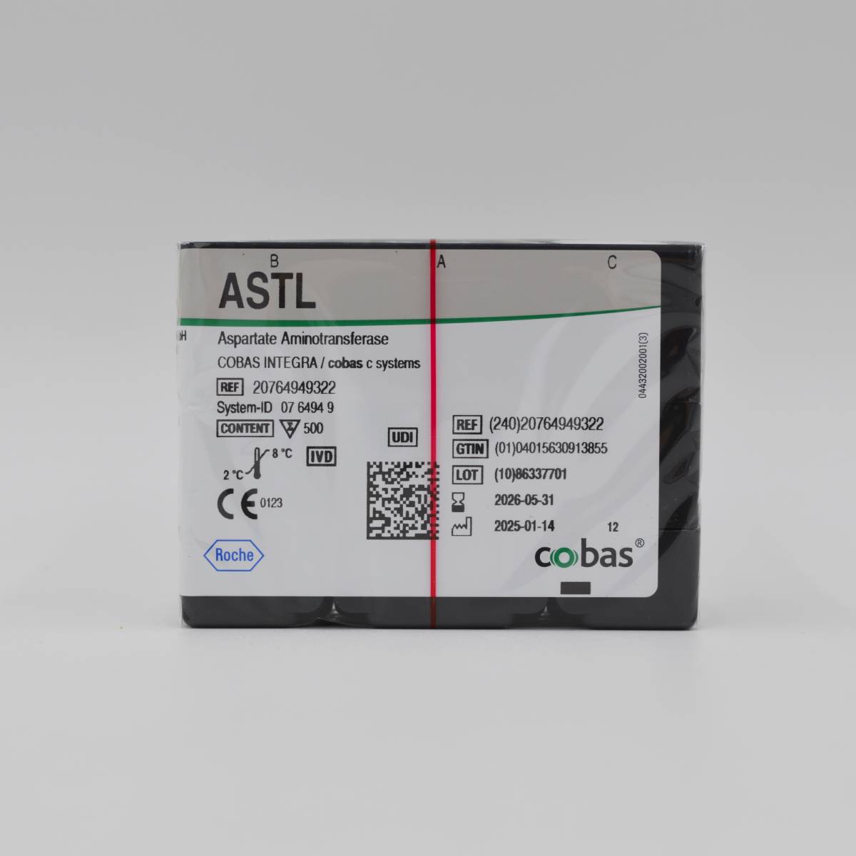 In vitro εξέταση για τον ποσοτικό προσδιορισμό της καταλυτικής δραστικότητας της AST (EC 2.6.1.1, L‑ασπαρτική: 2‑οξογλουταρική αμινοτρανσφεράση) σε ορό και πλάσμα ανθρώπου, στα συστήματα COBAS INTEGRA. Η AST που υπάρχει στο δείγμα καταλύει τη μεταφορά μιας αμινομάδας μεταξύ του L‑ασπαρτικού και του 2‑οξογλουταρικού για τον σχηματισμό οξαλοξικού και L‑γλουταμικού. Στη συνέχεια, το οξαλοξικό αντιδρά με το NADH, παρουσία μηλικής αφυδρογονάσης (MDH), για τον σχηματισμό NAD+. Η φωσφορική πυριδοξάλη χρησιμεύει ως συνένζυμο στην αντίδραση μεταφοράς της αμινομάδας και διασφαλίζει την πλήρη ενεργοποίηση του ενζύμου.