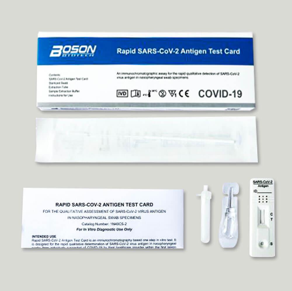 Το RAPID SARS-COV-2 ANTIGEN TEST CARD της BOSON Biotech είναι μια αξιόπιστη, ταχεία δοκιμασία ανοσοχρωματογραφίας για την ποιοτική ανίχνευση συγκεκριμένων αντιγόνων του SARS – CoV – 2 που υπάρχουν στον ανθρώπινο ρινοφάρυγγα. Αυτό το τεστ προορίζεται για την ανίχνευση αντιγόνου από τον ιό SARS – CoV – 2 σε άτομα που είναι ύποπτα για COVID – 19 και αυστηρά για επαγγελματική χρήση σε εργαστήρια ή σημεία φροντίδας κορωνοϊού.