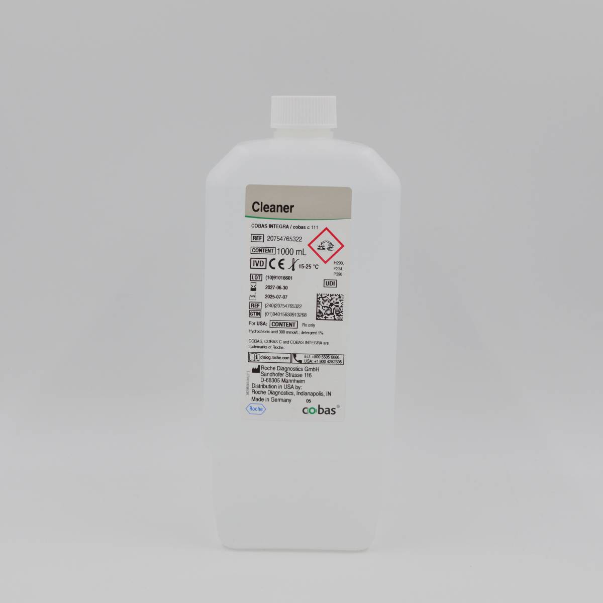 Το Cleaner είναι διάλυμα έκπλυσης για τους λήπτες δειγμάτων και αντιδραστηρίων καθώς και για σωληνώσεις των μηχανημάτων Roche. Για να διασφαλιστεί η ακεραιότητα των ληπτών δειγμάτων και αντιδραστηρίων, καθώς και των σωληνώσεων, είναι απαραίτητη η έκπλυσή τους. Το CLEANER Roche Cobas χρησιμοποιείται ως διάλυμα έκπλυσης, ώστε να αποφευχθεί πιθανή επιμόλυνση λόγω μεταφοράς από τους λήπτες δειγμάτων και αντιδραστηρίων καθώς και τις σωληνώσεις.