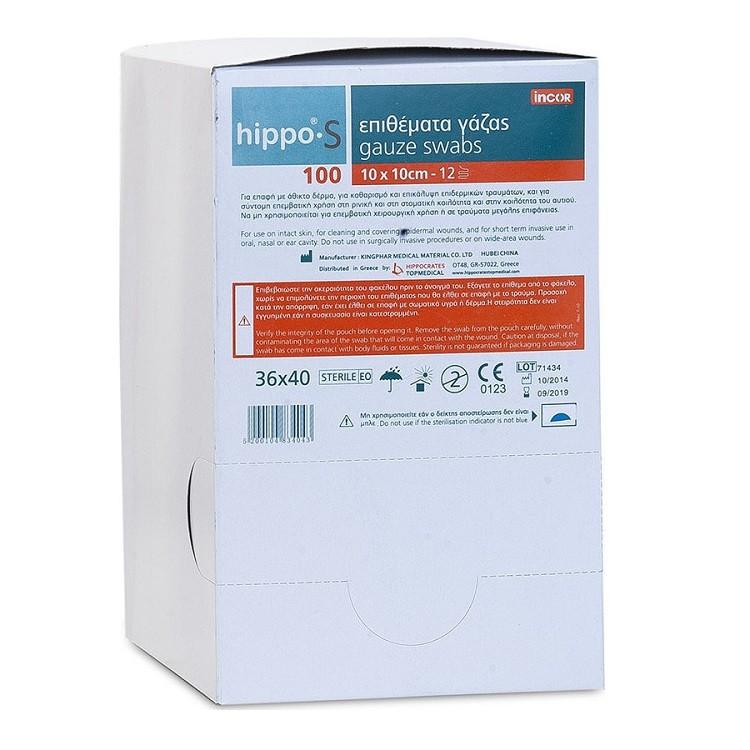Επιθέματα Γάζας hippo S 10×10 8ply (σε ανάπτυξη 36×40) συσκευασία 100ΤΜΧ.